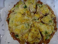 ラーメンピザ、自分が5/8、奥方が3/8、感想は、ラーメン丼食べたかった。