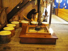 250年前の陣屋だった建物を移築した風情たっぷりの食事処で、豪快な柱と梁が組み合わさった吹き抜けの天井の下で、蕎麦や川魚の定食などが1、000円前後で食べられる。