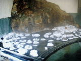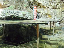 温泉溜り、ここで温度を下げているのだろうか。白い物は石に温泉成分が付着したもの。