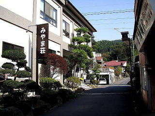 石畳の旧道沿いに旅館7軒が佇む。